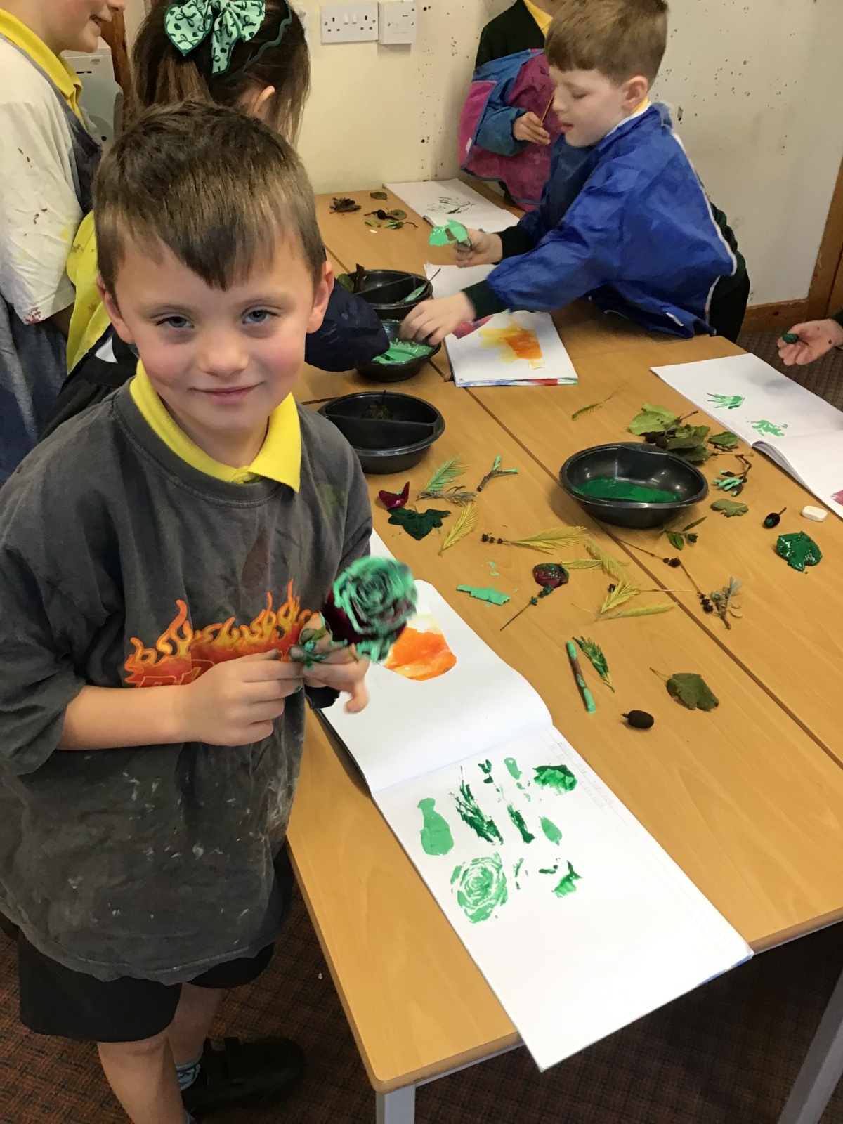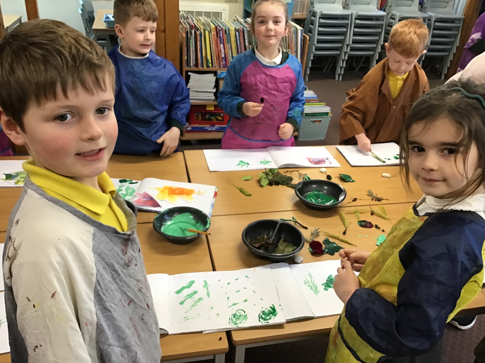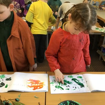 This term in Mulberry Class, children have explored a range of creative skills and materials in Art. They developed their understanding of colour mixing through painting activities, learning how to create new colours and apply them carefully. They also explored printing using natural materials, experimenting with texture and pattern.